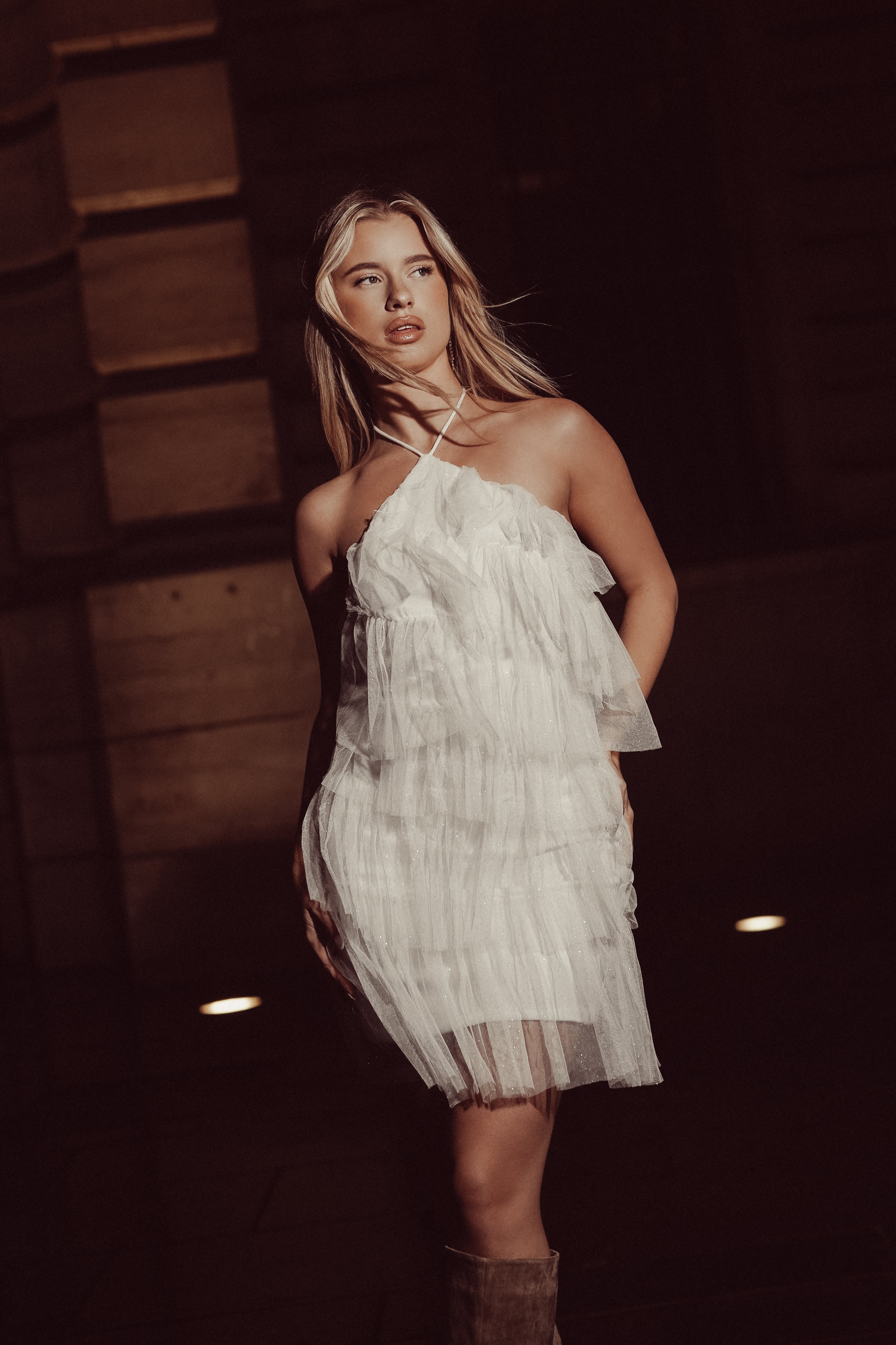 Ruffle glitter jurkje met halter wit - Ayla