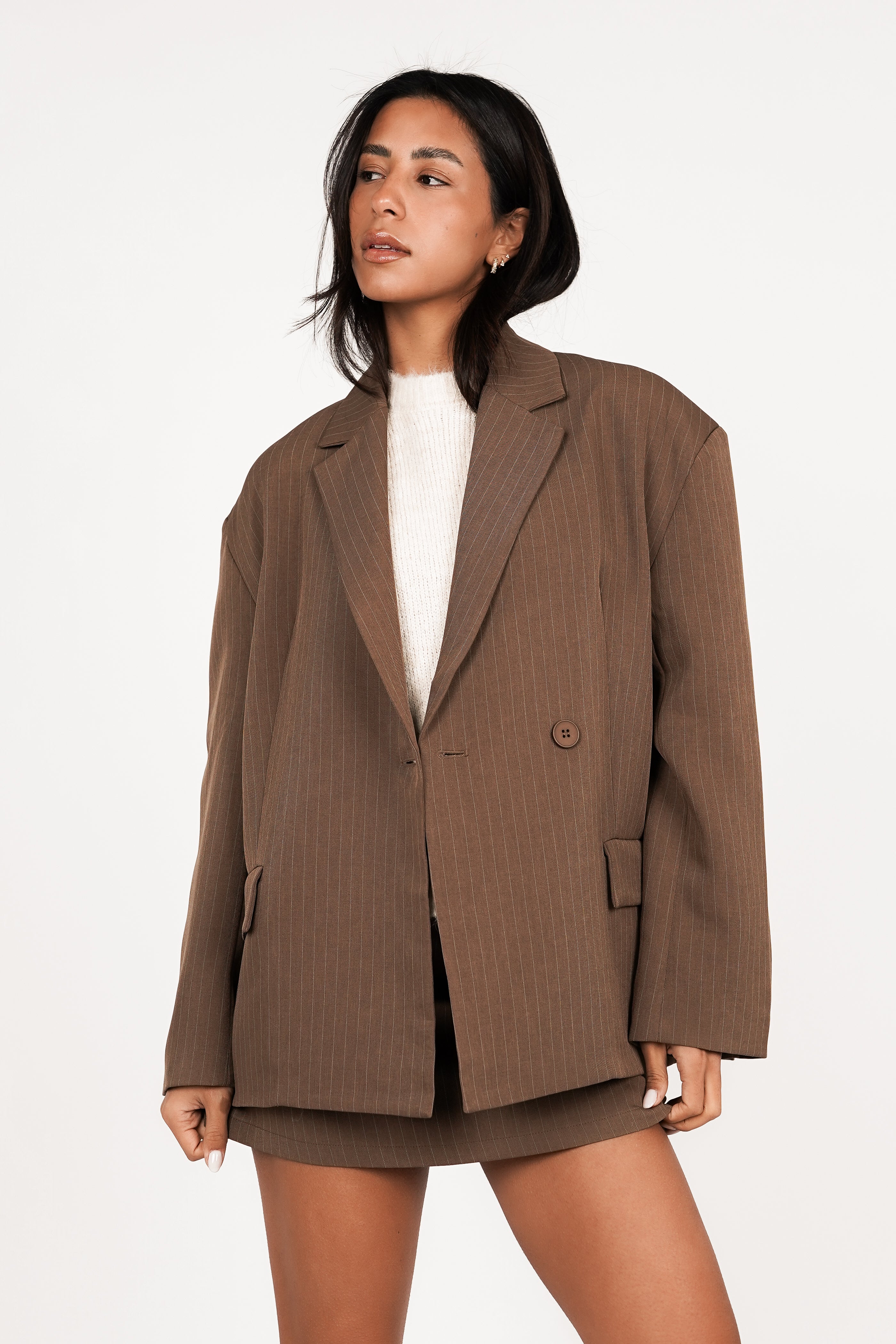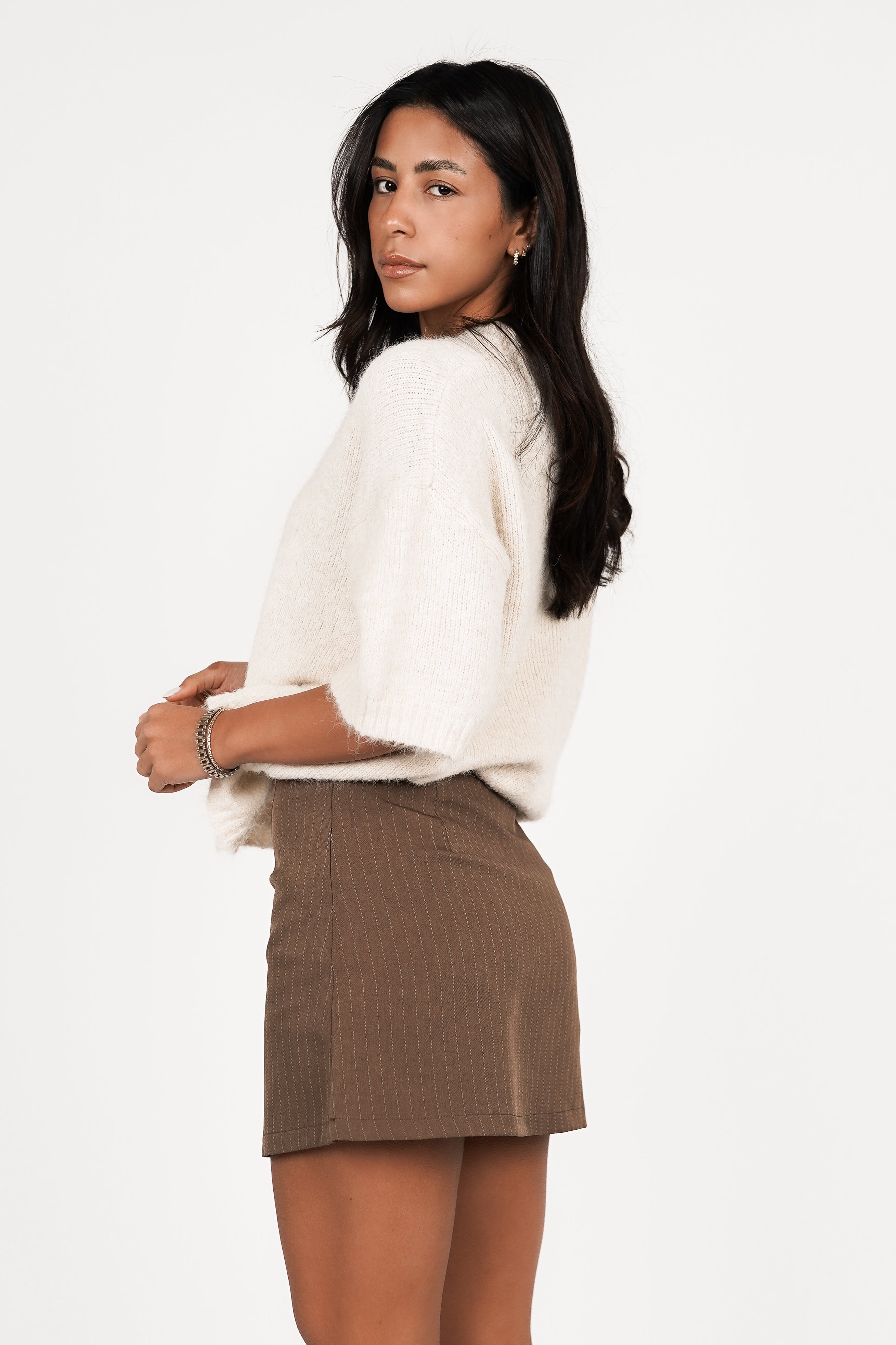 Skort met krijtstreep bruin - Cleo