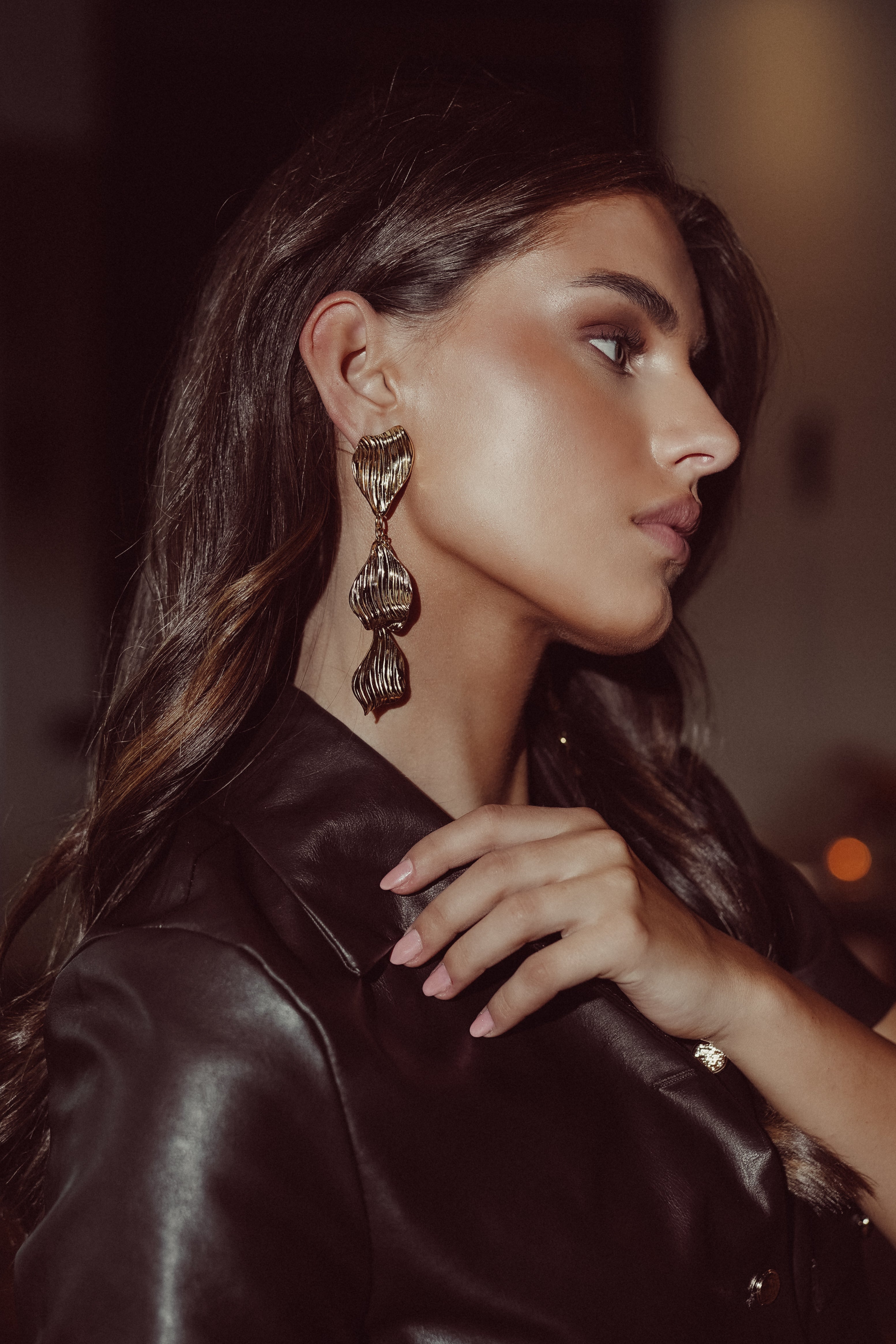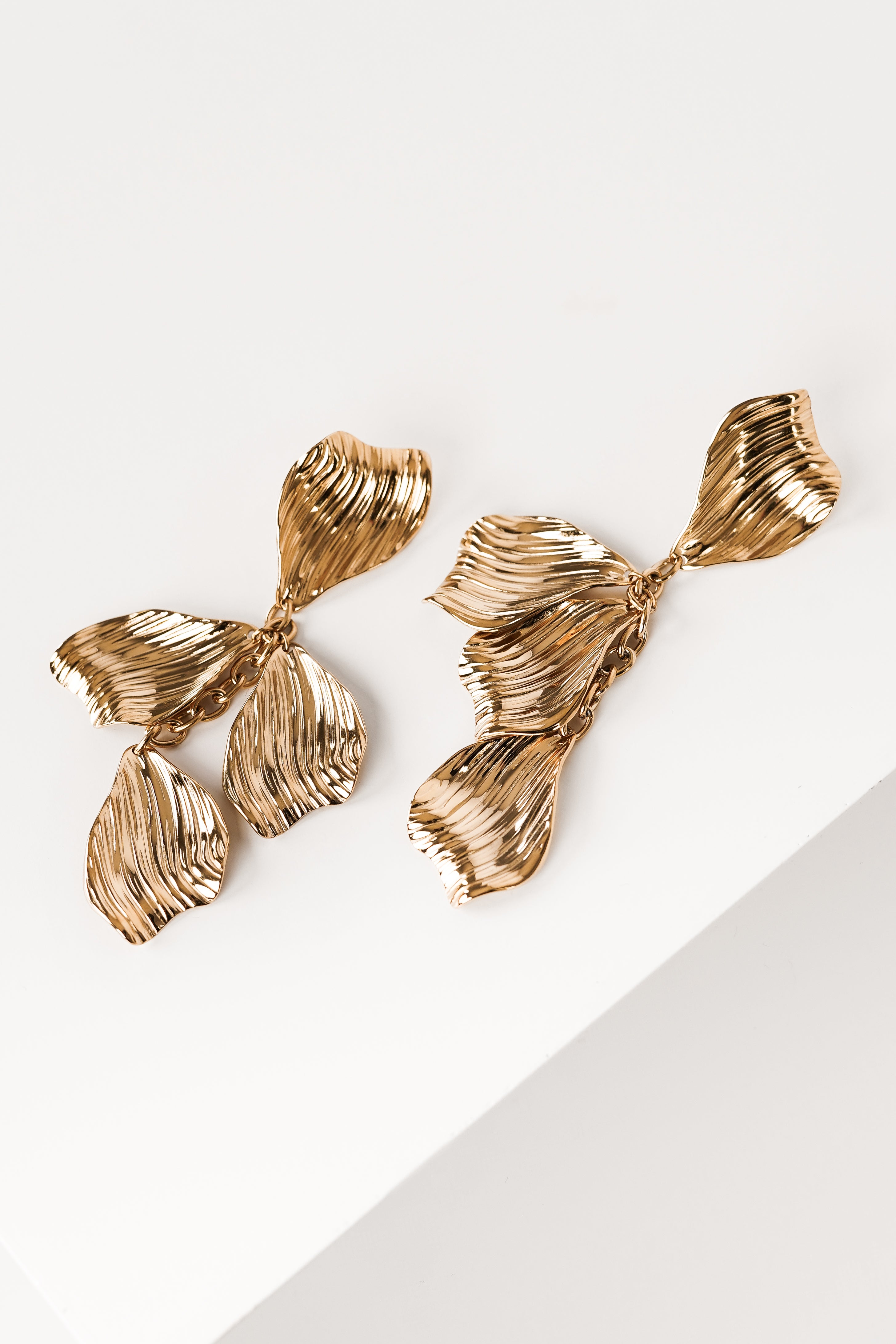 De Fenna oorbellen hebben verschillende hangers in een blad vorm met structuur. De oorbellen hebben een lang model en maken je look helemaal af!