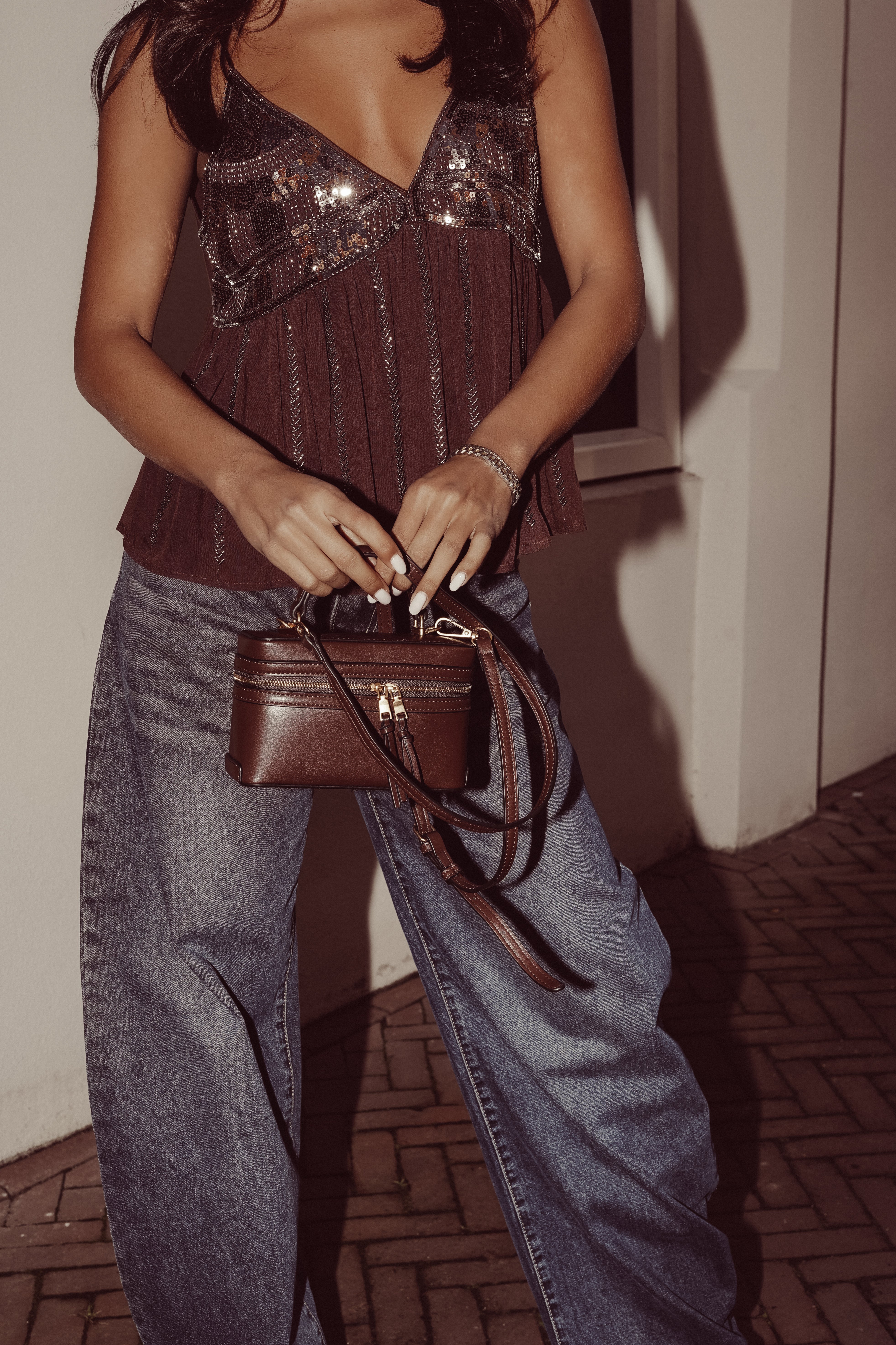 De top is rijkelijk versierd met kralen en subtiel glinsterende pailletten, die bij elke beweging een schitterend effect geven. De combinatie van de relaxed fit met luxe details maakt dit item een absolute musthave. De top bevat verstelbare bandjes en een triangel bovenzijde.
