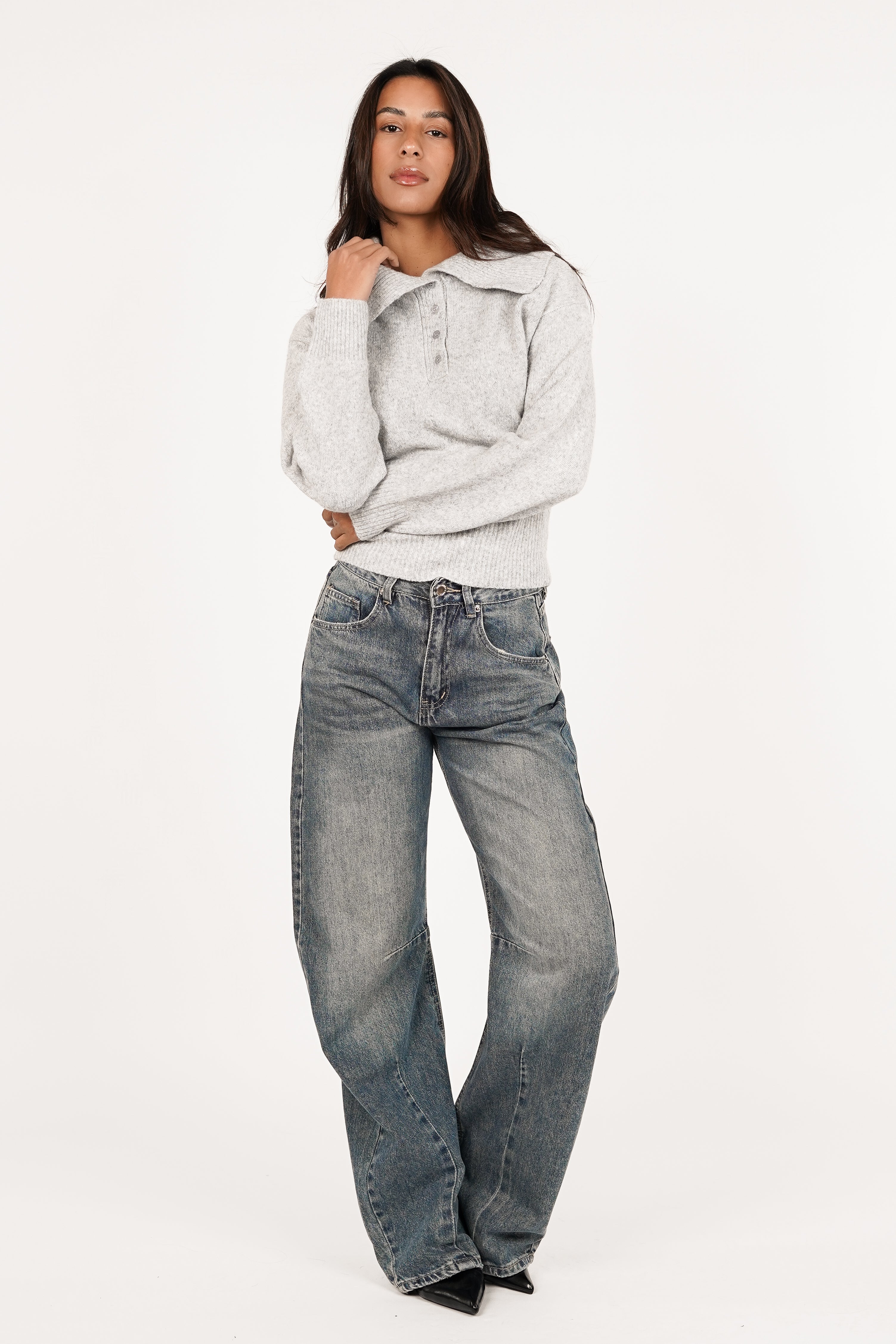 Voeg een warme, stijlvolle touch toe aan je wintergarderobe met deze zachte wollen trui. Het oversized kraagdetail geeft een cozy én chique uitstraling, terwijl de knoopjes aan de voorzijde een speels en vrouwelijk accent toevoegen. Perfect om solo te dragen of als laagje over een basic top voor een relaxed, maar stijlvolle look.